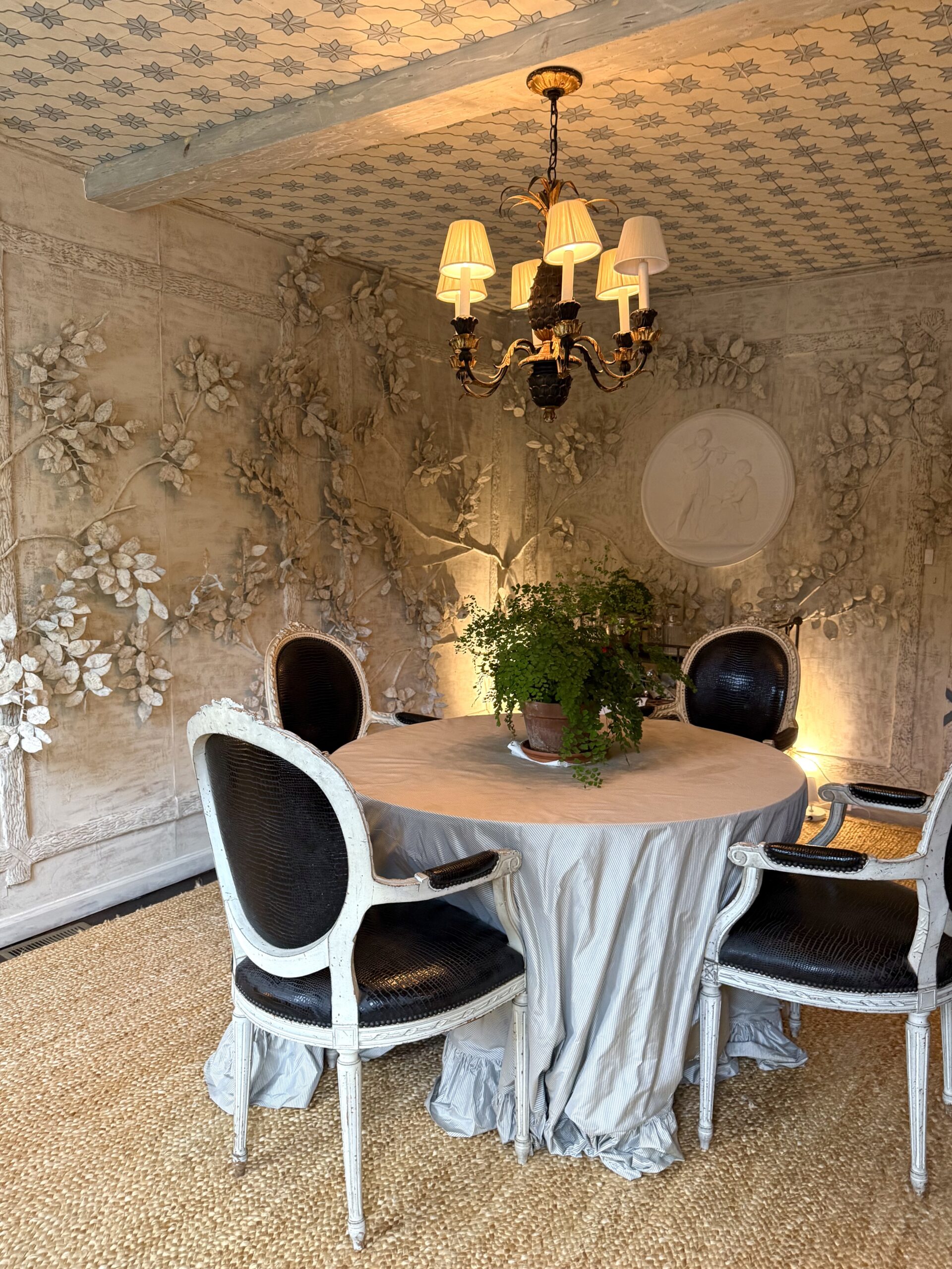 From hand-painted floors to sculptural papier-mâché lighting and richly textured wallpapers, every room is a masterclass in refined creativity. Brittany’s signature style—a blend of classicism and bold pattern—makes each space feel both storied and fresh. Don’t miss the thoughtful design moments and curated collections that give this house its soul. It is not to be missed!